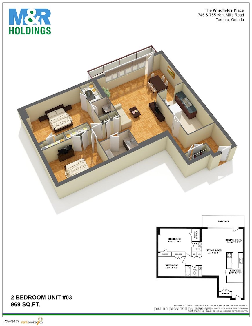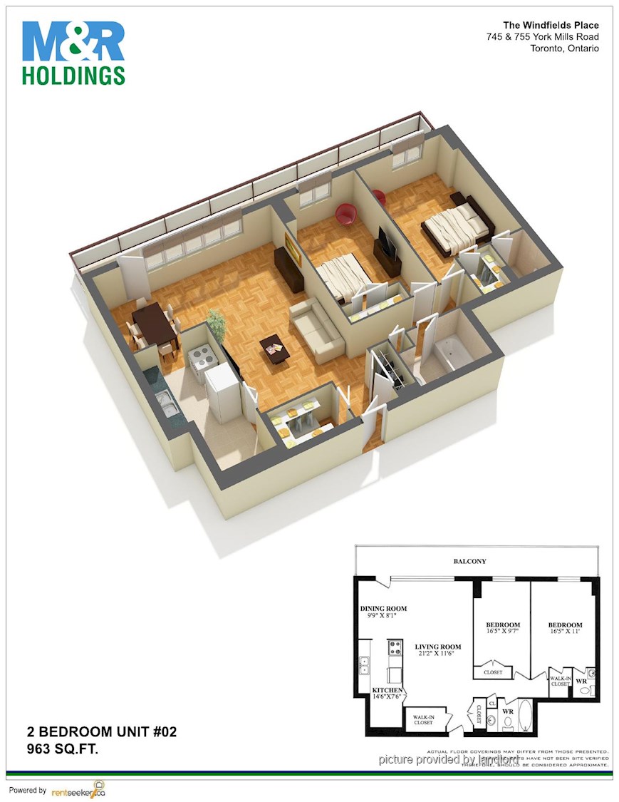 2 Bedrooms apartment.